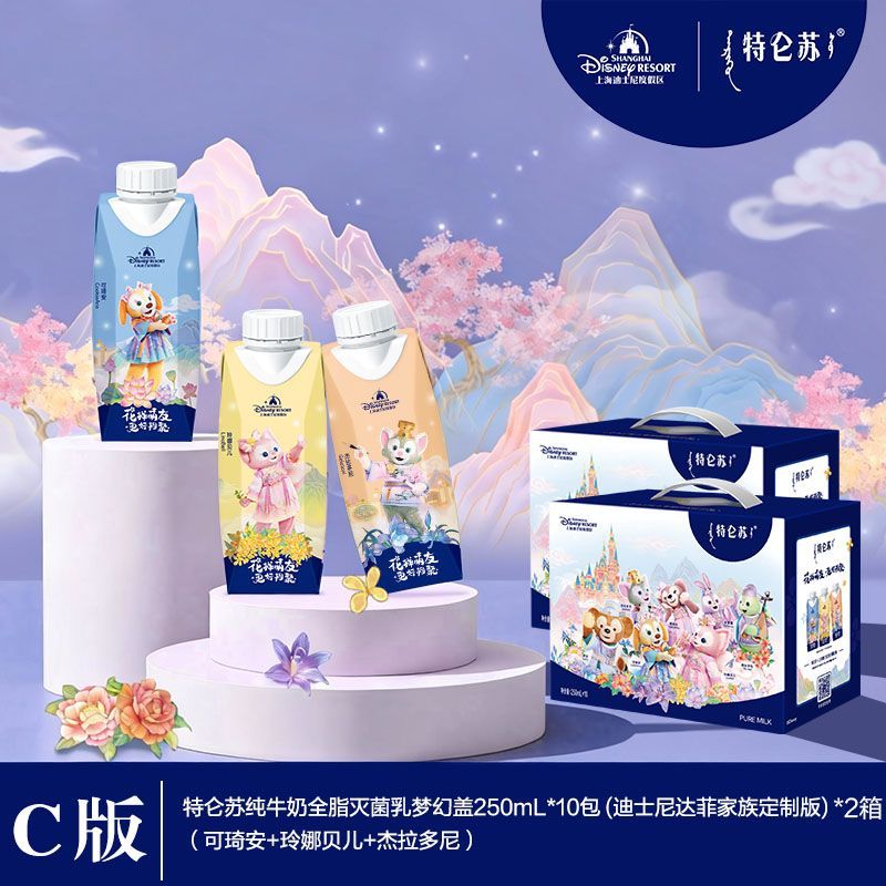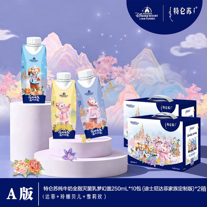 12月特仑苏x上海迪士尼达菲月限定纯牛奶梦幻盖250ml*10包*2箱