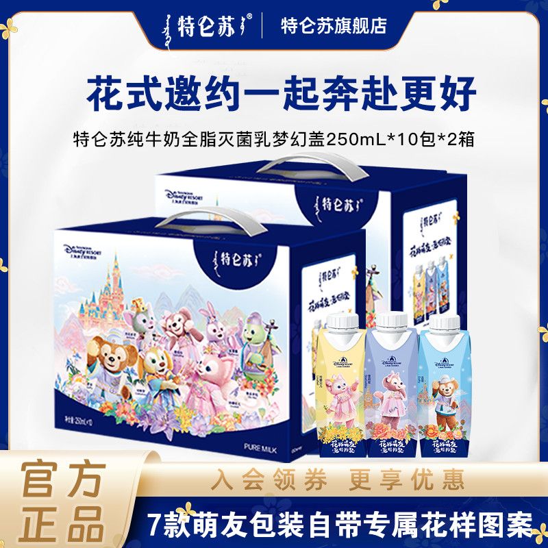 品牌 12月特仑苏x上海迪士尼达菲月限定纯牛奶梦幻盖250ml*10包*2箱